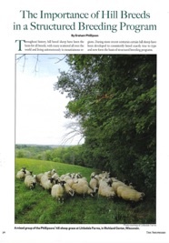 We currently raise purebred registered Scottish Blackface and registered North Country Cheviot sheep, plus crossbred lambs for market sired by a North Country Cheviot ram. These breeds are hardy hill sheep breeds and do not require or desire a lot of intensive management -a helping hand and diligent shepherding is the management style that we have developed. We could not efficiently manage these sheep without the assistance of well trained border collie herding dogs.